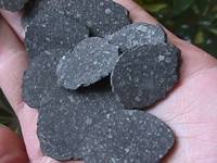 2) - Vérifier si, dans le cas d'objets pierreux, en sectionnant un petit bout de l'objet et en le polissant, on peut apercevoir dans la matrice ( intérieur de la météorite, dessous la croûte de fusion ) la présence de chondres. En profiter pour vérifier que la couleur intérieure de l'objet ( matrice ) est différente de la couleur brunâtre ou noirâtre de l'extérieur ( dans le cas où la croûte de fusion est encore visible ). La présence de grains de métal disséminés au milieu de la roche est également caractéristique des météorites.