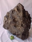 On peut apercevoir sur la surface, les dépressions causées par la rentré dans l'atmosphère, appelées Regmaglyptes. Météorite "GIBEON" |